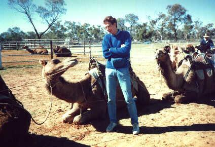 "Now, be a good boy and take me to the vineyard." "Ha, Ha, Ha, another rookie rider!" In Alice Springs you can "take a camel to lunch" at a local vineyard. Fortunately the camel doesn't actually dine with you (he has terrible table manners). |