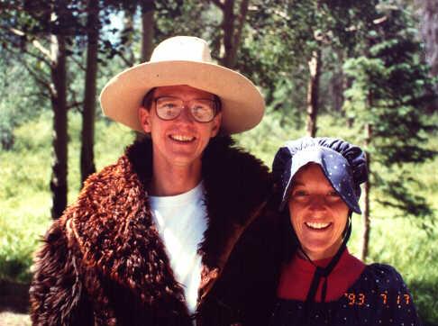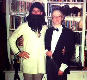 These two nefarious characters appeared at a Halloween party we hosted at Fountain Valley. The theme was famous murderers and murder victims. The fellow on the left is Rasproutin, the infamous Russian mystic and adviser to Czarina Alexandra (identifiable by the Brussels sprouts in his beard). The fellow(ess) at right is ... you guessed it ... the butler. |