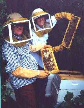 Helen shows off her hive to LaVonne.![]() |