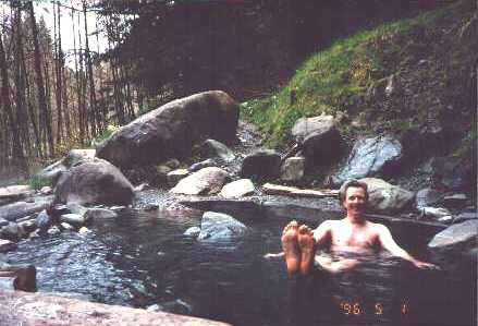 After a long, hard day of hiking, Howard enjoys one of his favorite pastimes, bathing in the great out-of-doors (in this case, a natural hotspring in Olympic National Park). |