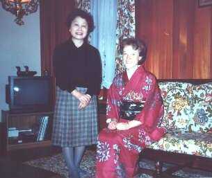 What's wrong with this picture? A British woman dressed in a lovely kimono, and a Japanese woman (Helen's friend Mrs. Asakawa) in a plaid skirt, stockings, and a blouse! |