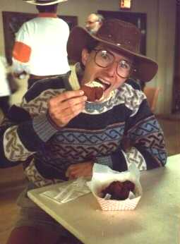Our galloping gourmand tucks in to a rare Colorado delicacy known as Rocky Mountain Oysters. There aren't any oceans in Colorado, but there are plenty of cows.....or, to be more precise, bulls.....I think you're catching on. Great with a tangy tomato, tartar, or horseradish sauce! |